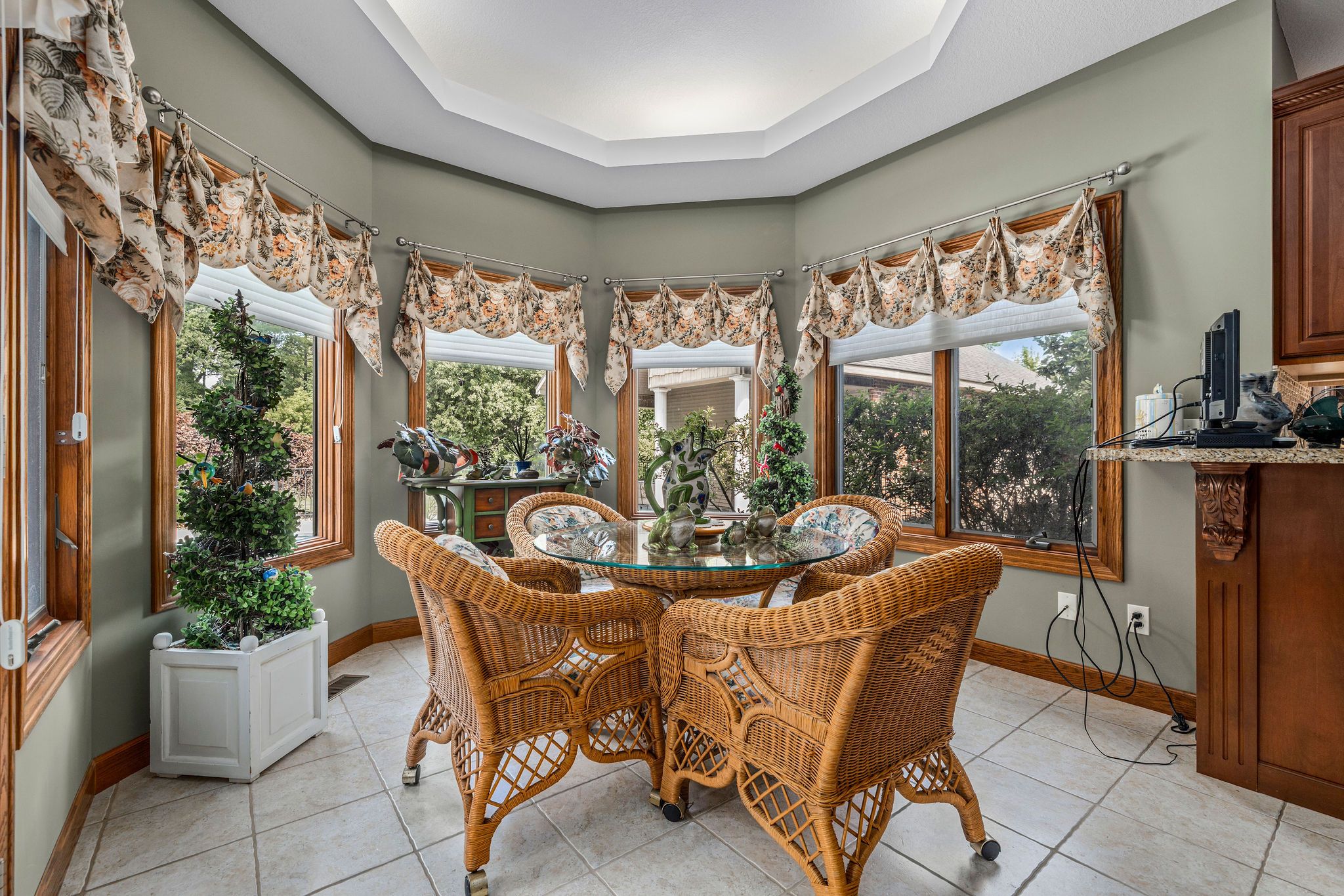 refrigerator, and a generous pantry. The adjoining breakfast nook overlooks the private backyard and pool, providing the perfect spot to