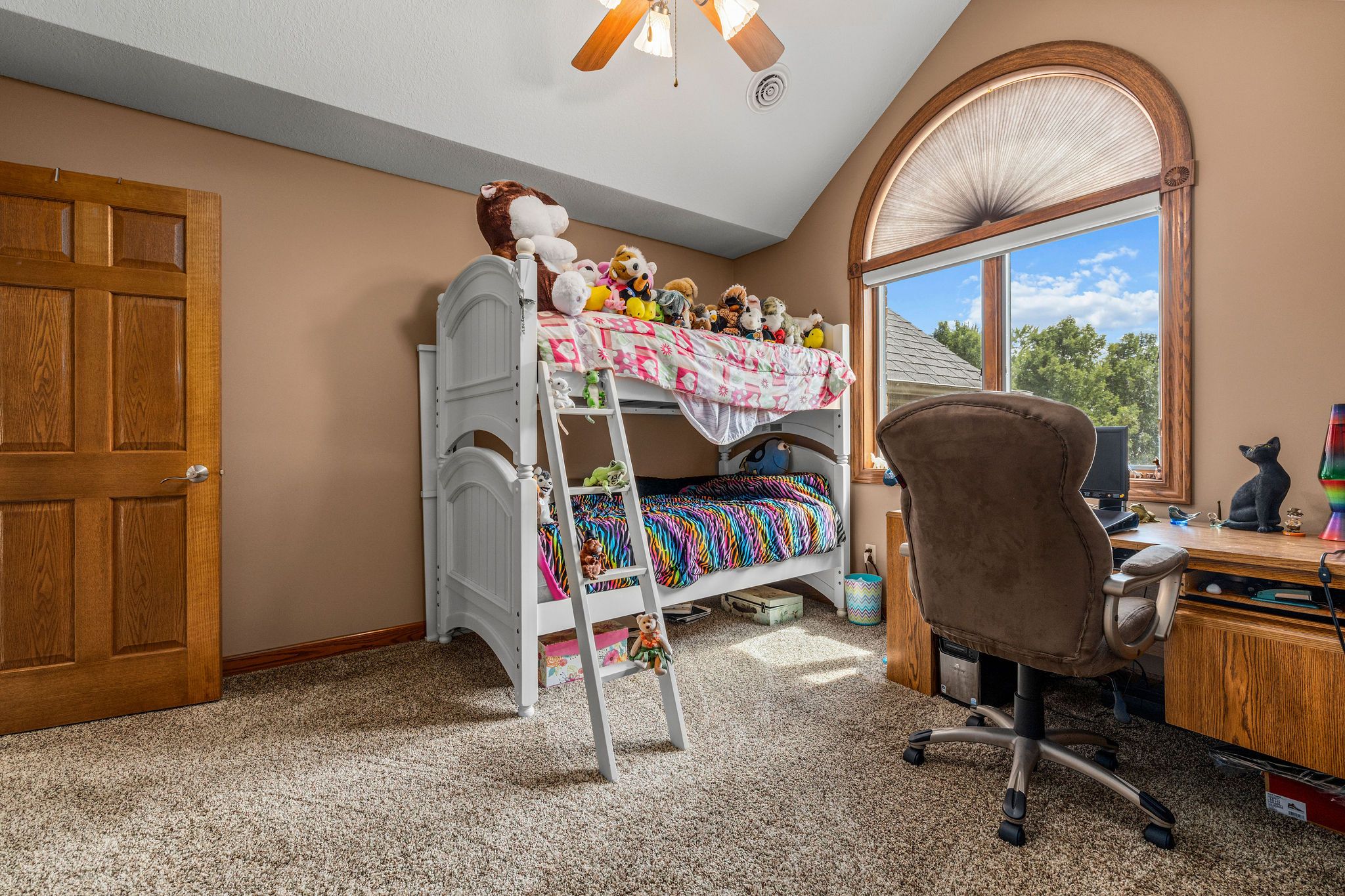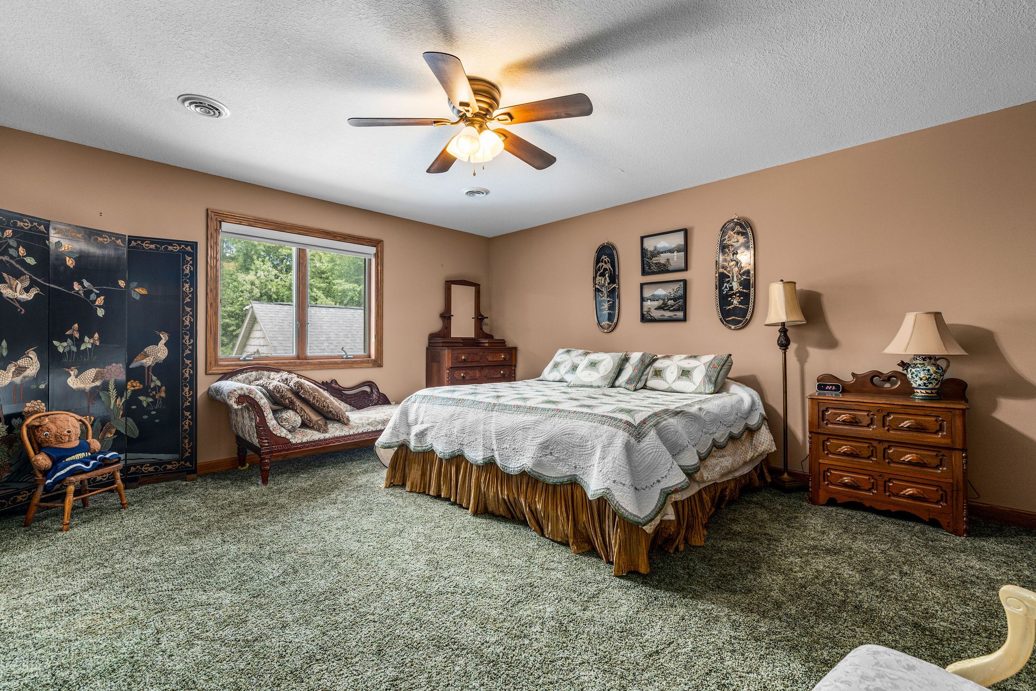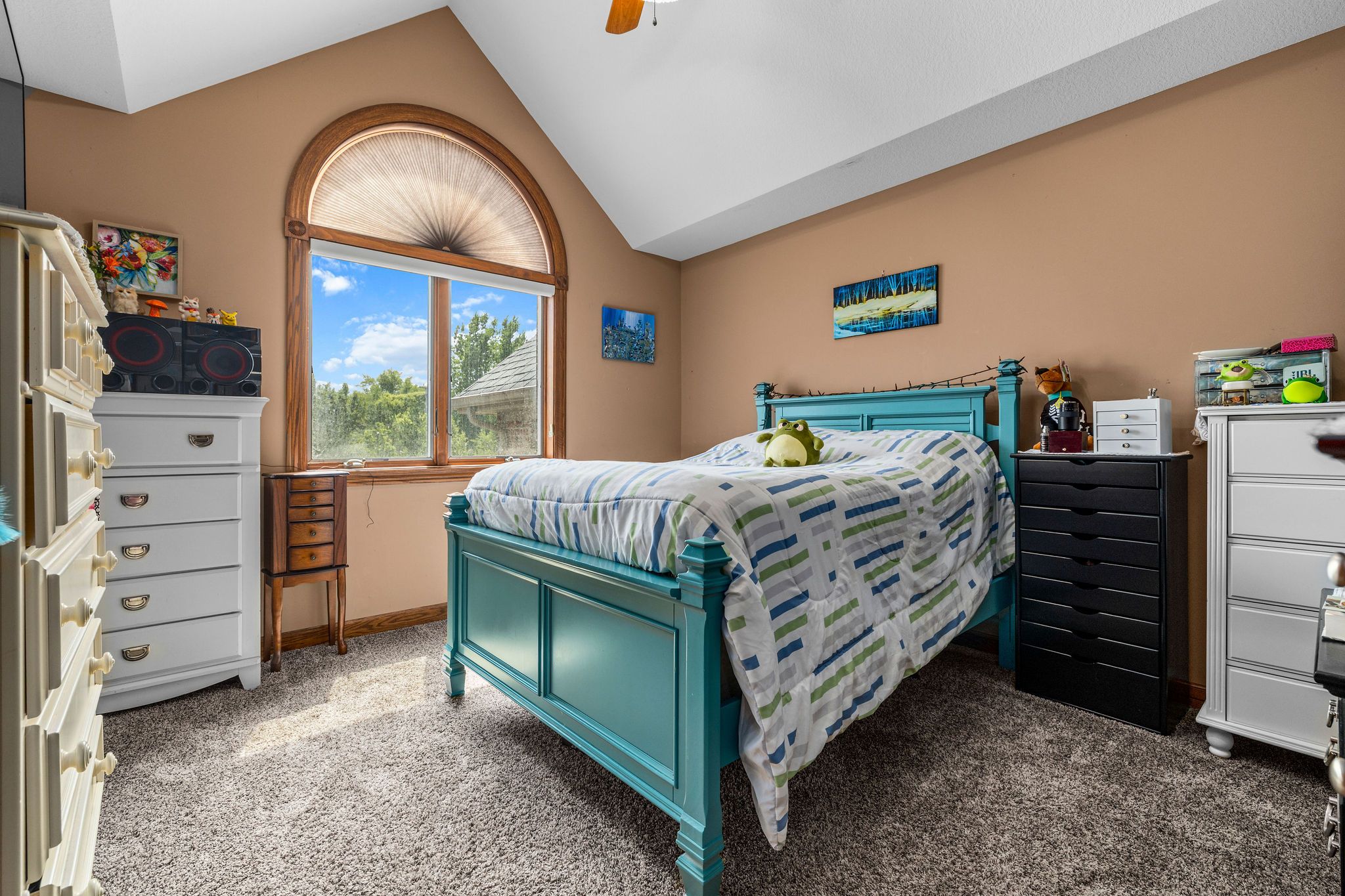 another with access to a nearby half bath. The finished lower level is designed for entertaining, especially during football season. A stone